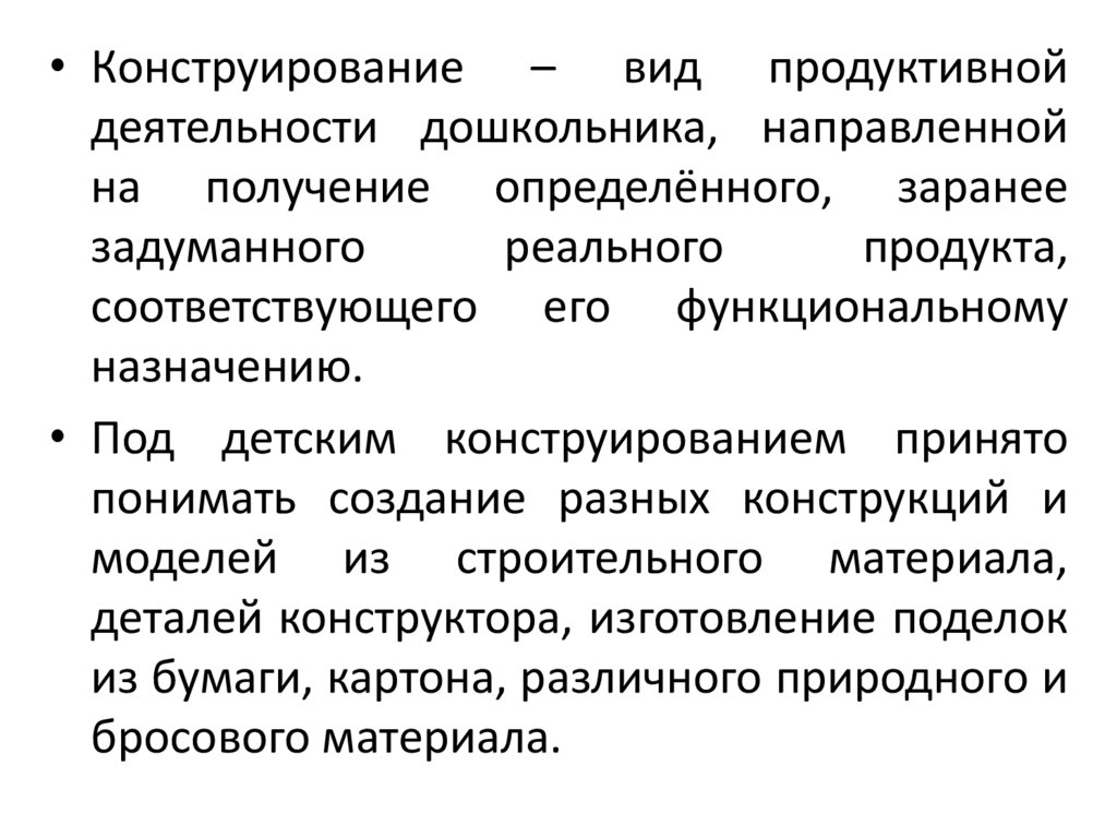 • Конструирование – вид продуктивнойдеятельности дошкольника, направленной