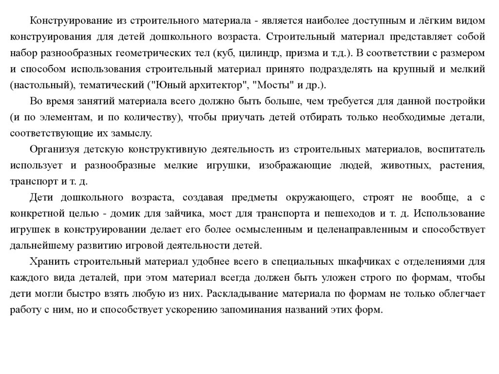 Дети дошкольного возраста, создавая предметы окружающего, строят не вообще, а с