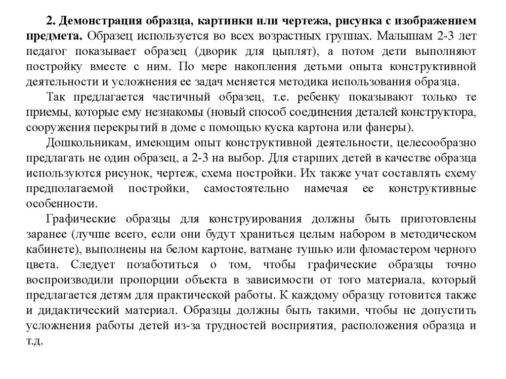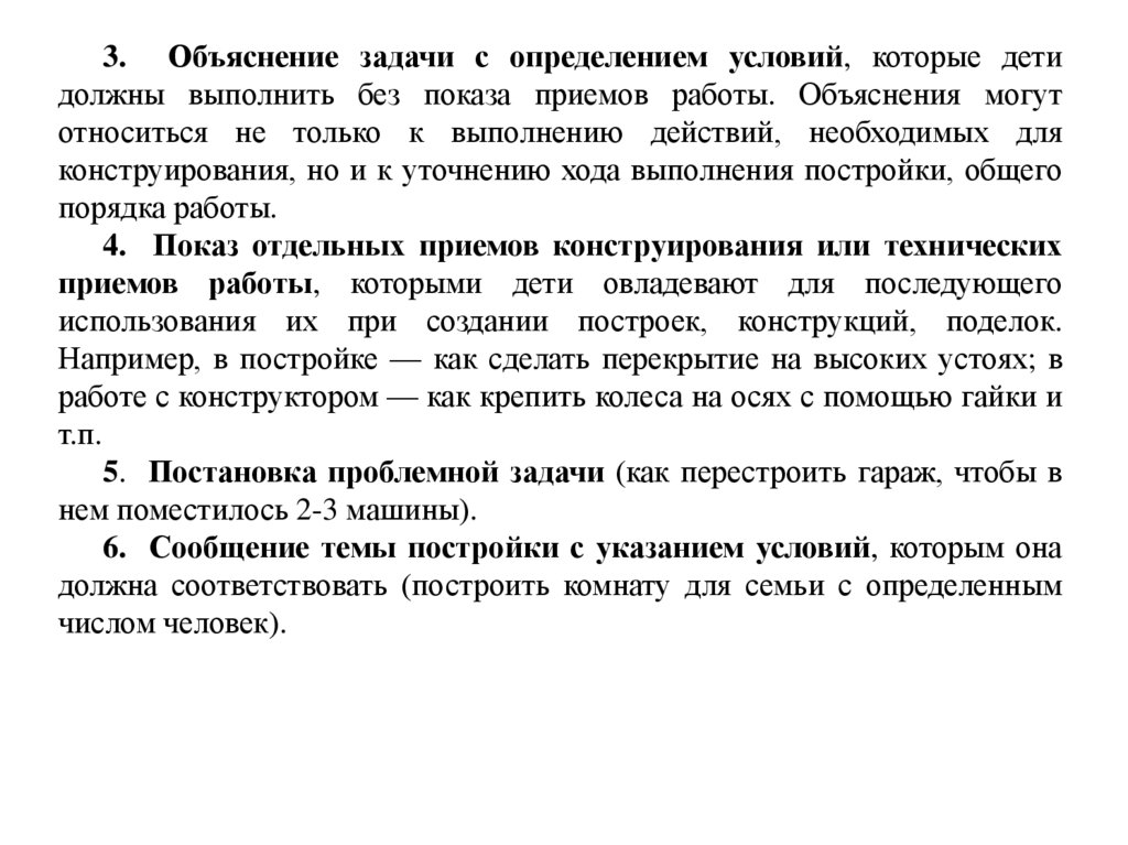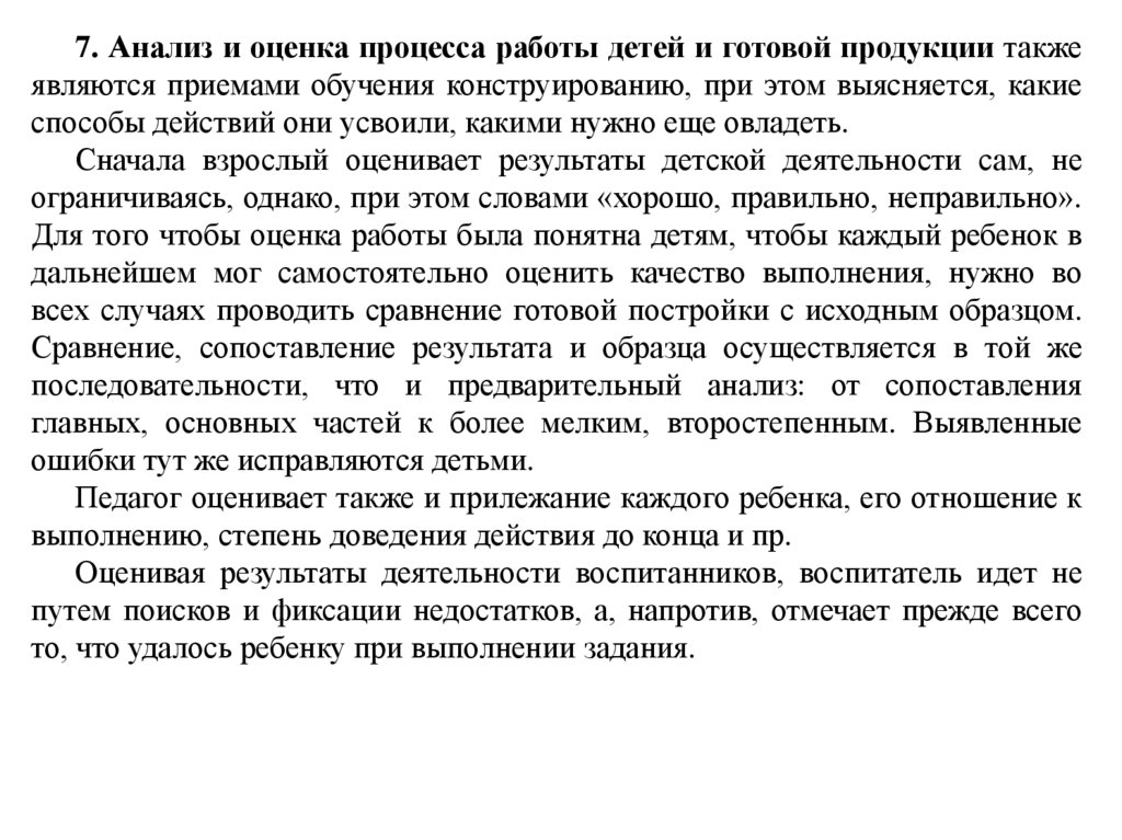 7. Анализ и оценка процесса работы детей и готовой продукции такжеявляются приемами обучения конструированию, при этом выясняется, какие