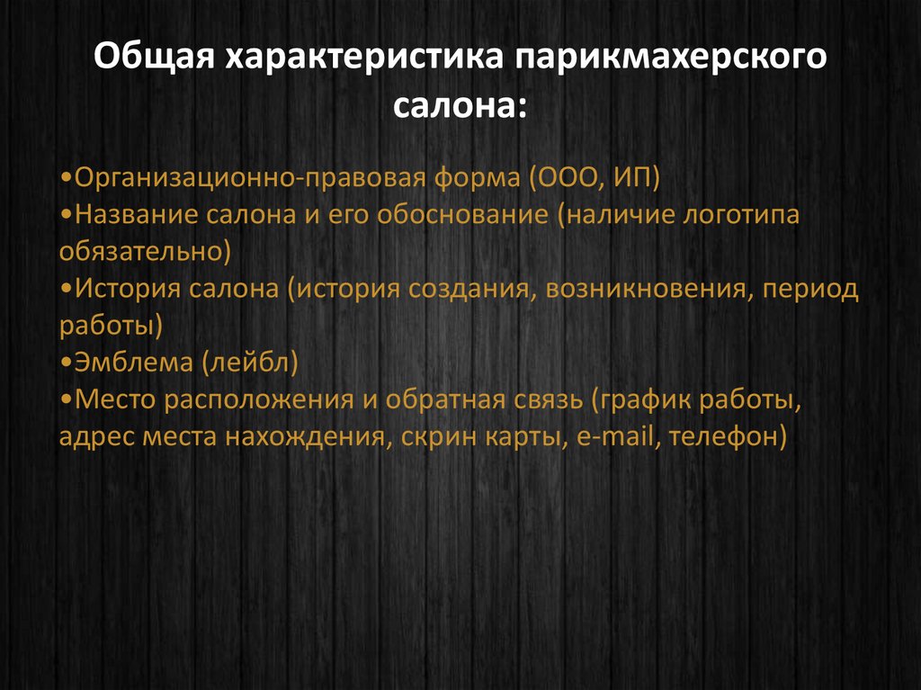 Характеристика салона:• Количество залов для выполнения услуг (картинки,