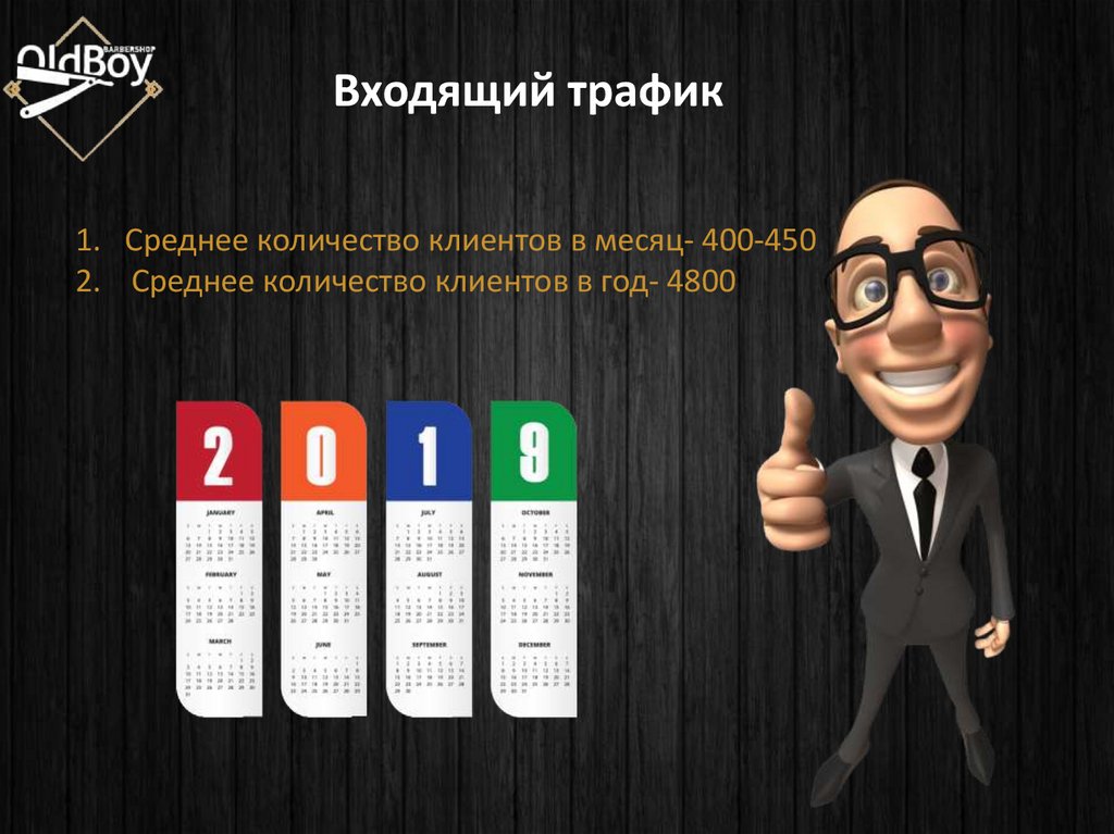 Входящий трафик1. Среднее количество клиентов в месяц- 400-450
