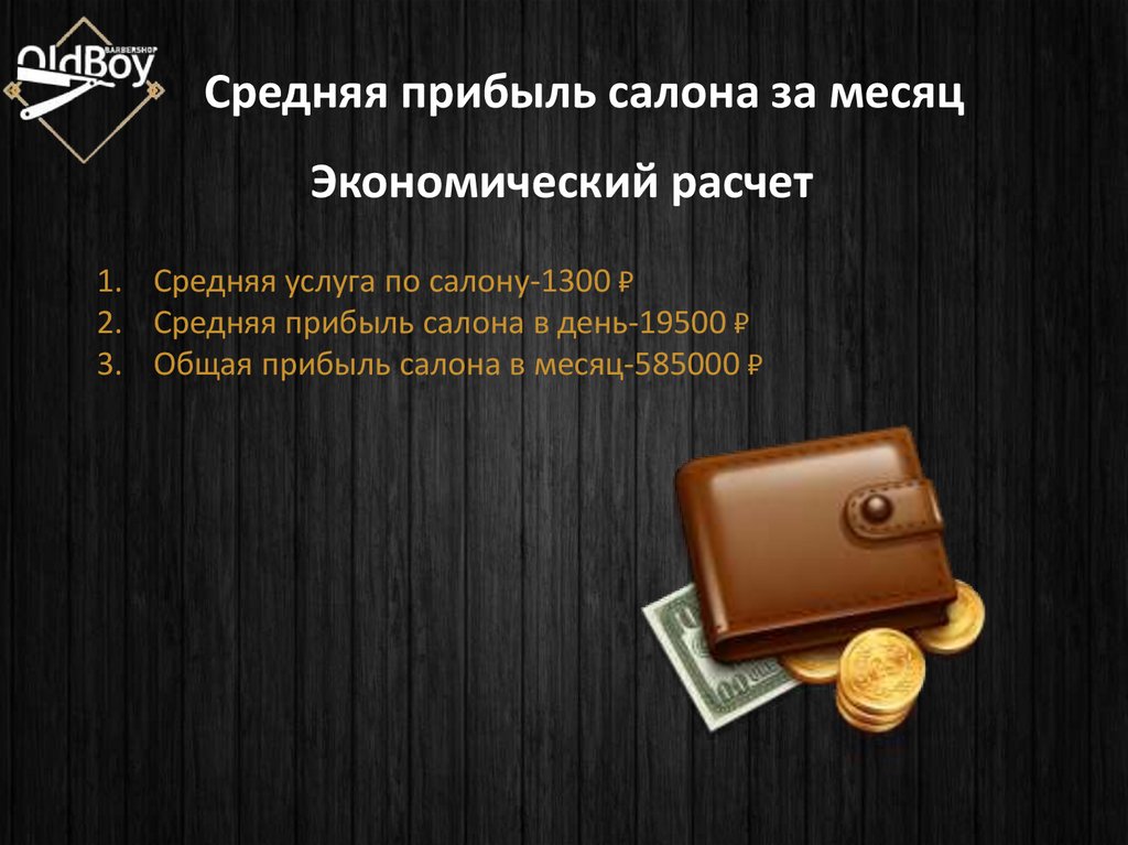 Чистая выручка салонаОбщая прибыль - Хозяйственные расходы - Зарплата персонала =