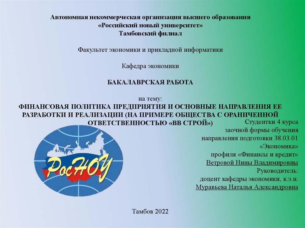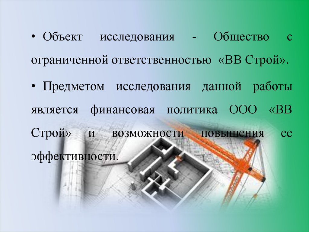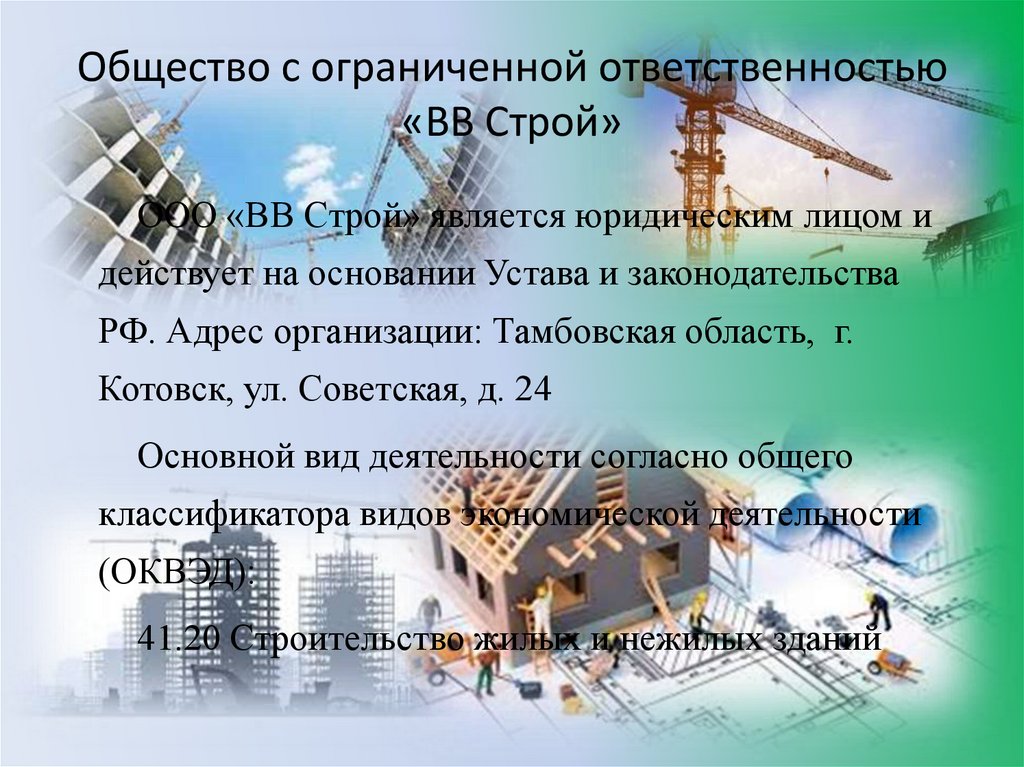 на примере Общества с ограниченной ответственностью «ВВ Строй»,