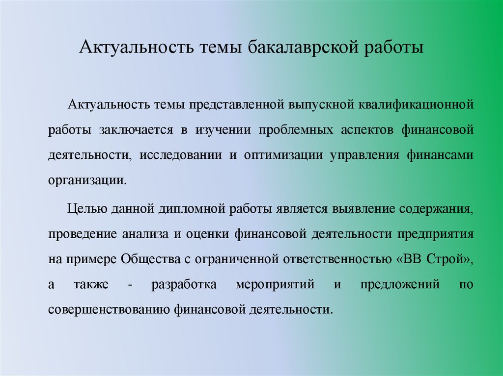 Актуальность темы бакалаврской работыАктуальность темы представленной выпускной квалификационной