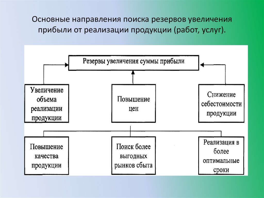 Основные направления поиска резервов увеличенияприбыли от реализации продукции (работ, услуг).