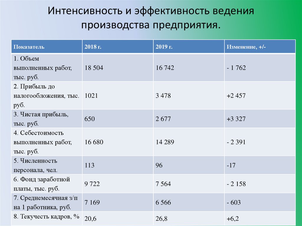Интенсивность и эффективность веденияпроизводства предприятия.
