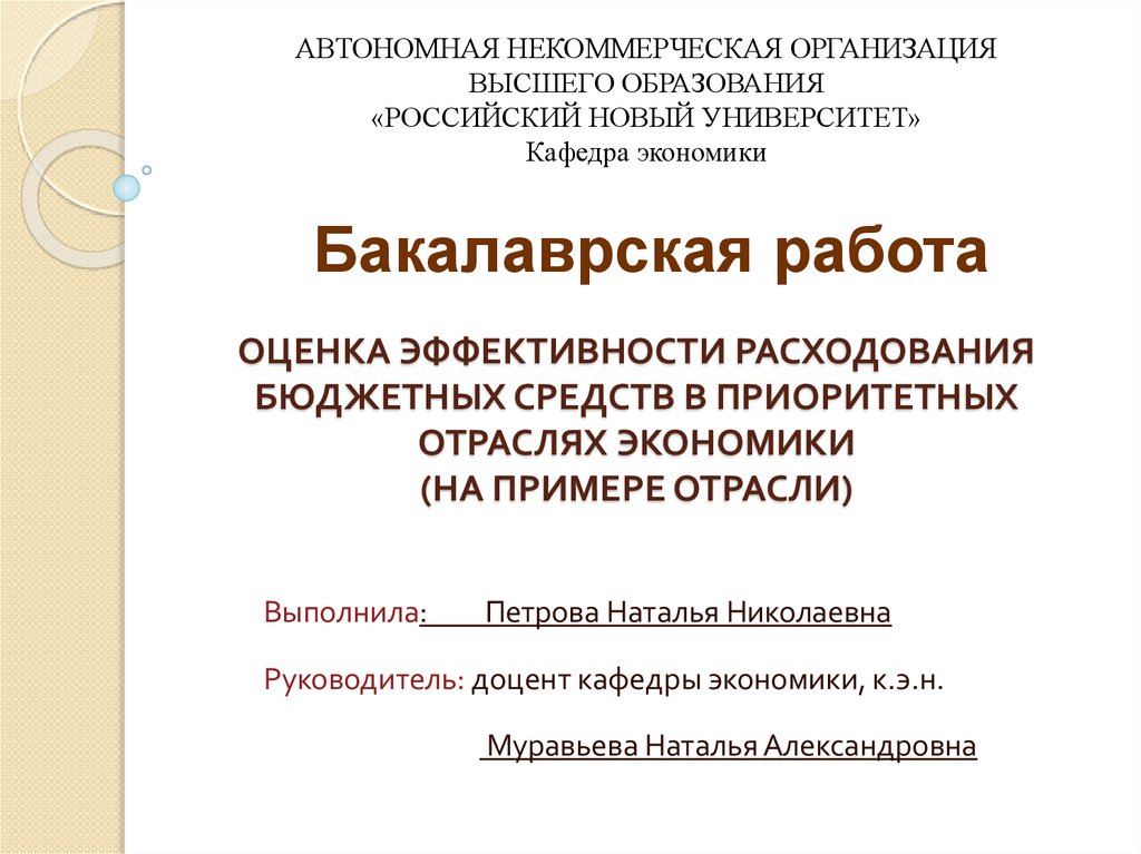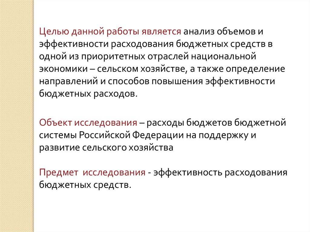 Целью данной работы является анализ объемов иэффективности расходования бюджетных средств в