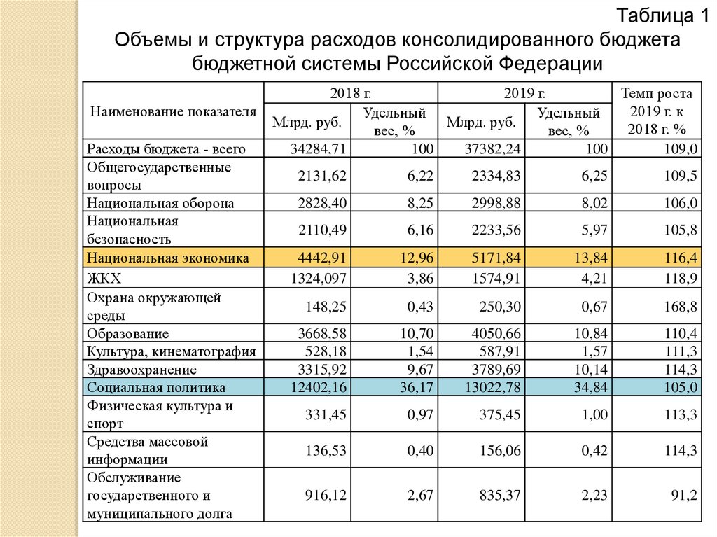 Таблица 1Объемы и структура расходов консолидированного бюджета
