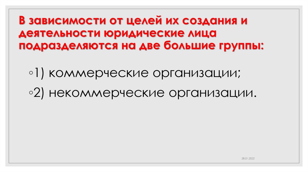 В зависимости от целей их создания идеятельности юридические лица