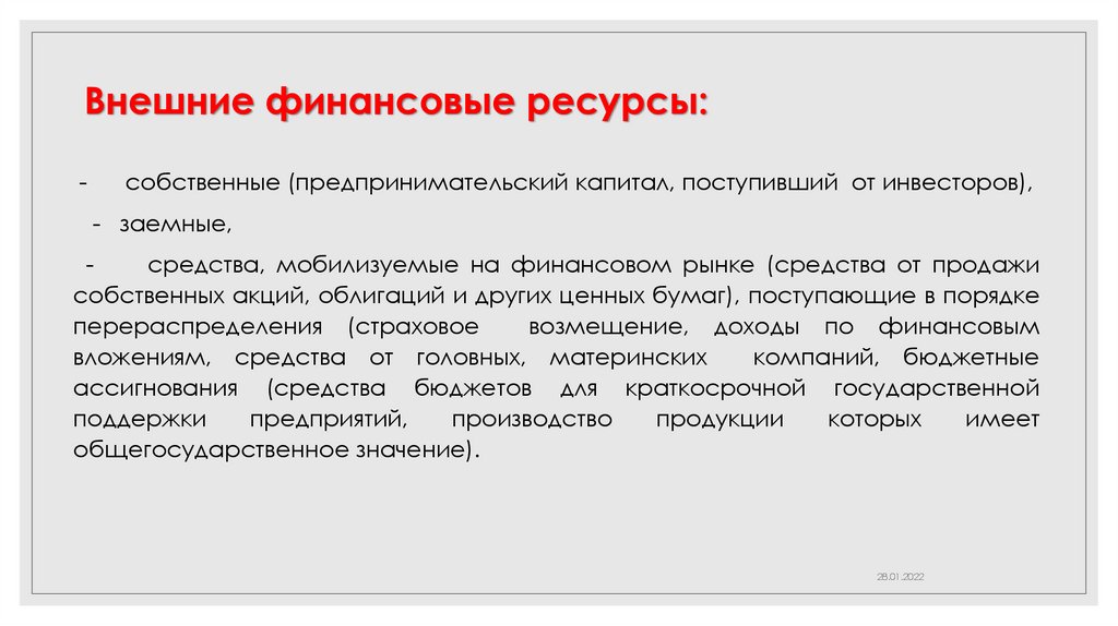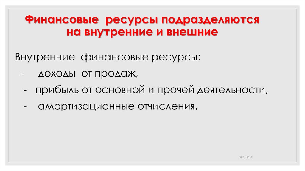 Финансовые ресурсы подразделяютсяна внутренние и внешние
