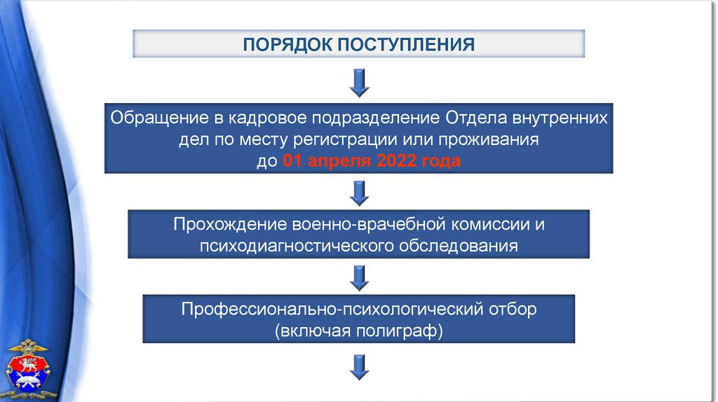 ПОРЯДОК ПОСТУПЛЕНИЯОбращение в кадровое подразделение Отдела внутренних