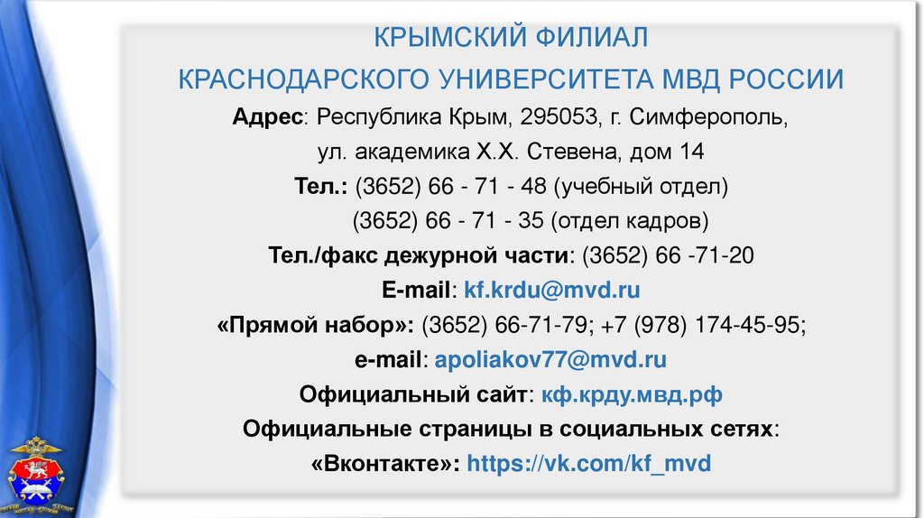 КРЫМСКИЙ ФИЛИАЛКРАСНОДАРСКОГО УНИВЕРСИТЕТА МВД РОССИИ