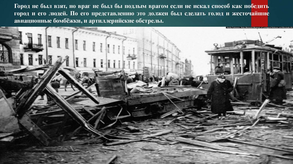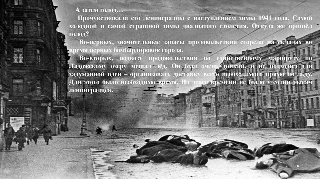 Город не был взят, но враг не был бы подлым врагом если не искал способ как победитьгород и его людей. По его представлению это должен был сделать голод и жесточайшие