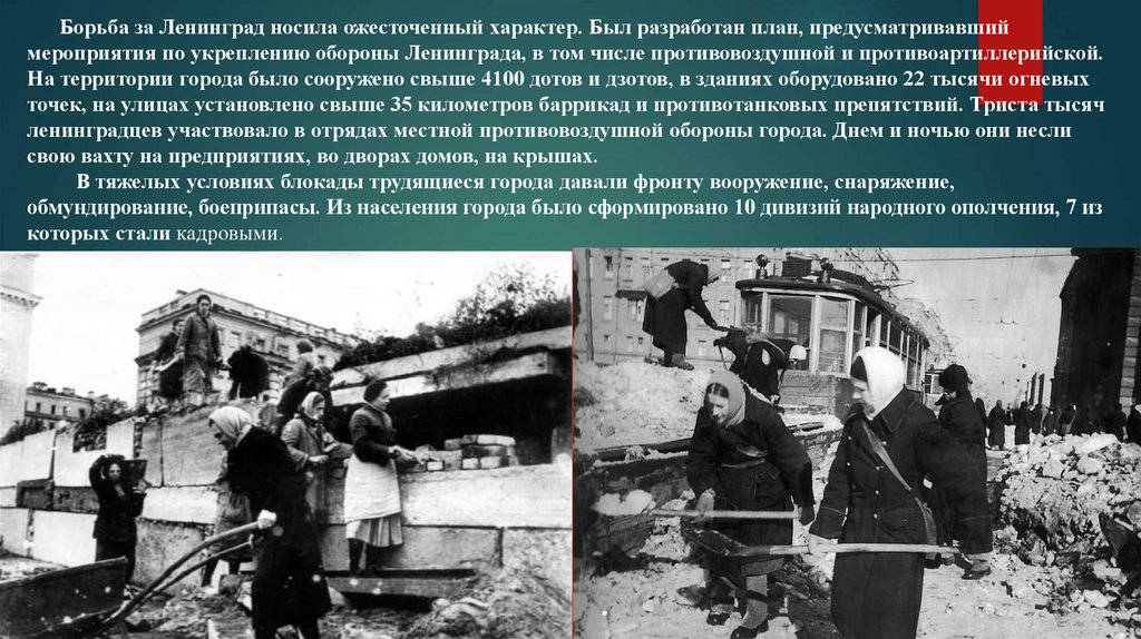Борьба за Ленинград носила ожесточенный характер. Был разработан план, предусматривавшиймероприятия по укреплению обороны Ленинграда, в том числе противовоздушной и противоартиллерийской.