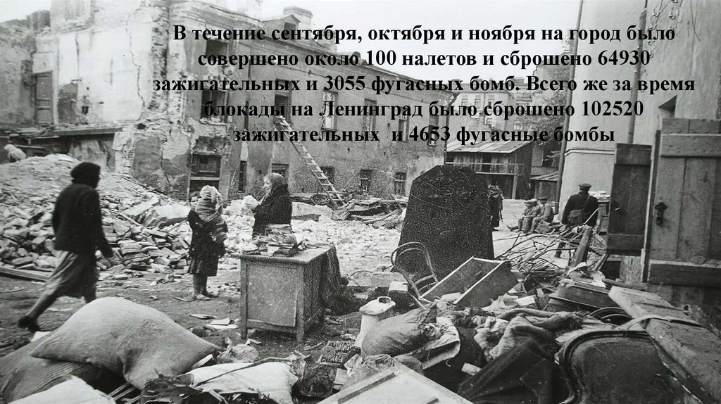 В течение сентября, октября и ноября на город былосовершено около 100 налетов и сброшено 64930