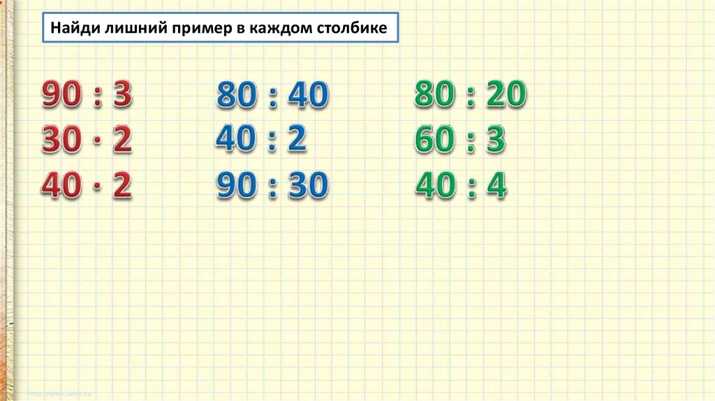 Найди лишний пример в каждом столбике8.