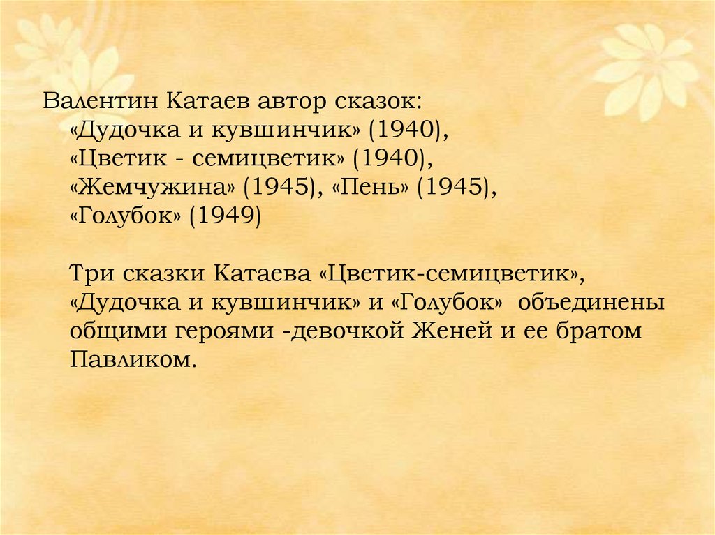 Валентин Катаев автор сказок:«Дудочка и кувшинчик» (1940),