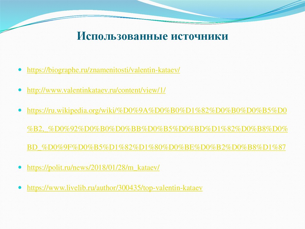 Использованные источникиhttps://biographe.ru/znamenitosti/valentin-kataev/