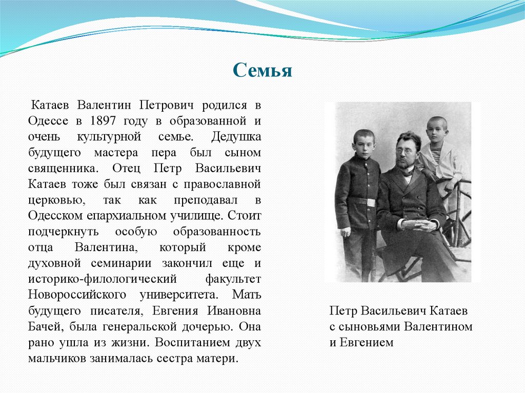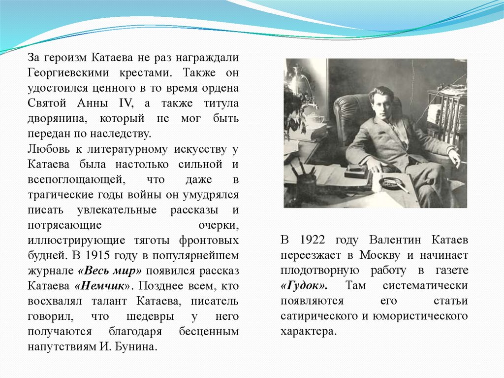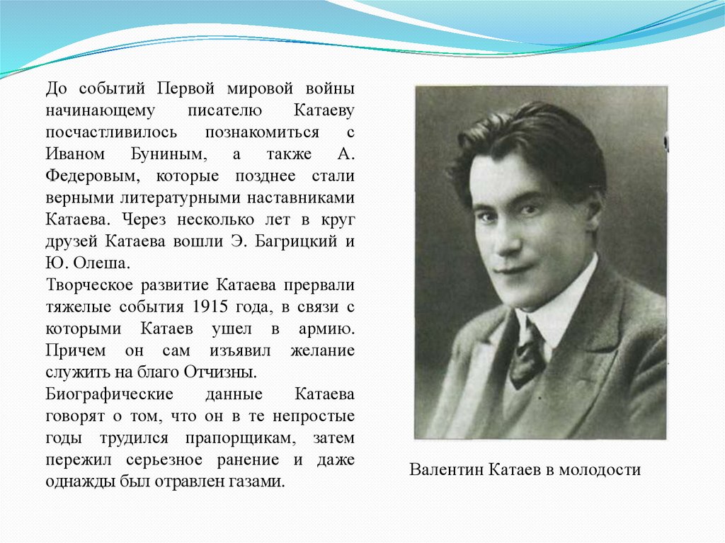 Интересные фактыОбразование Катаева из-за участия в Первой мировой и Гражданской войне и