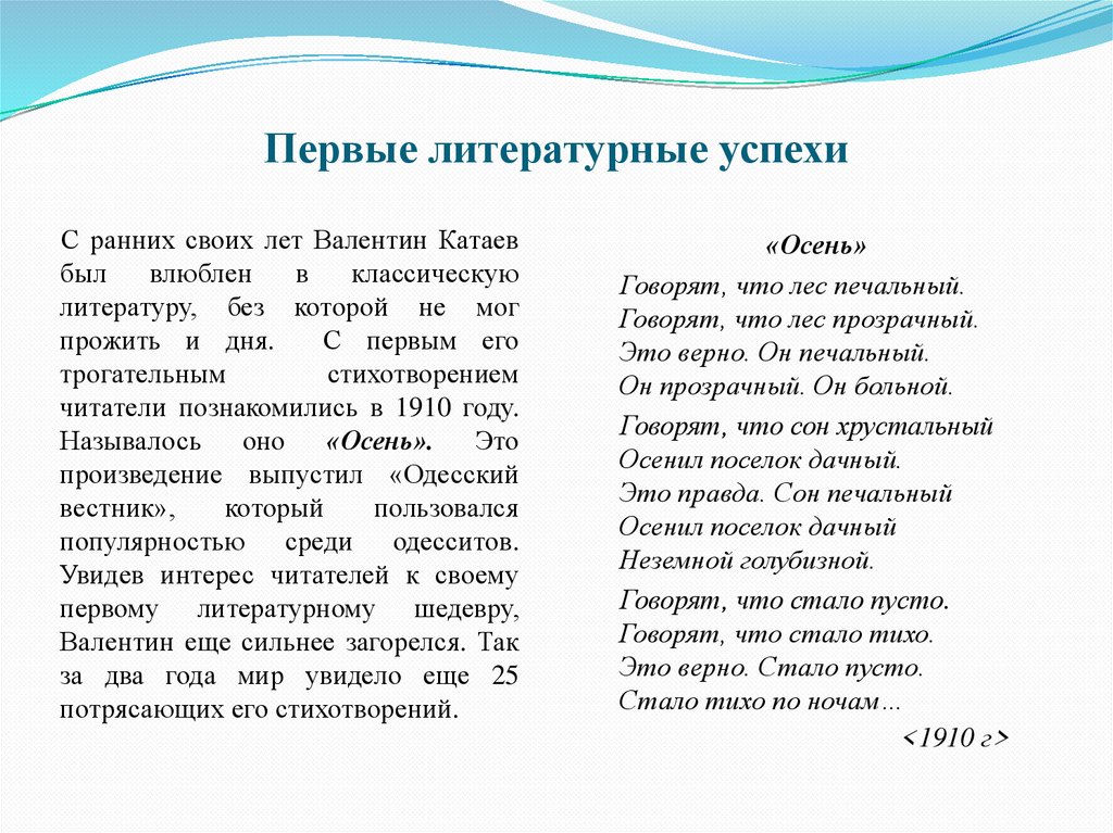 Первые литературные успехиС ранних своих лет Валентин Катаев