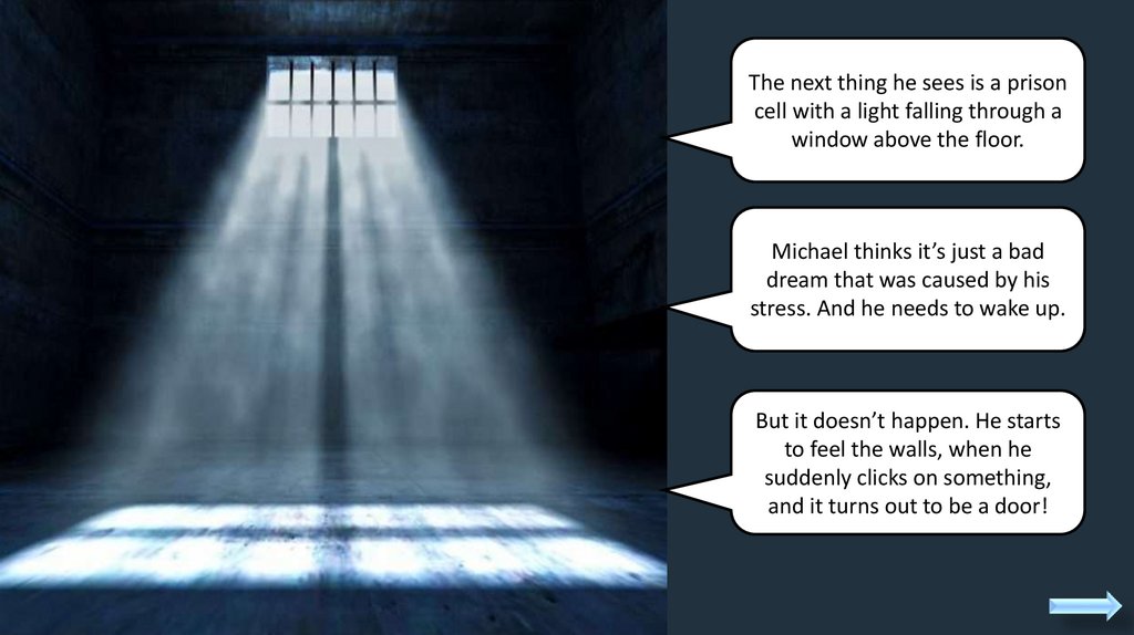 The next thing he sees is a prisoncell with a light falling through a