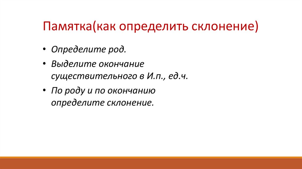 Памятка(как определить склонение)• Определите род.