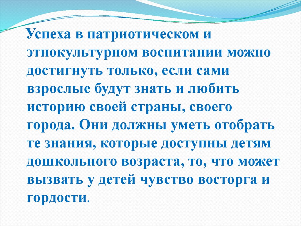 Успеха в патриотическом иэтнокультурном воспитании можно
