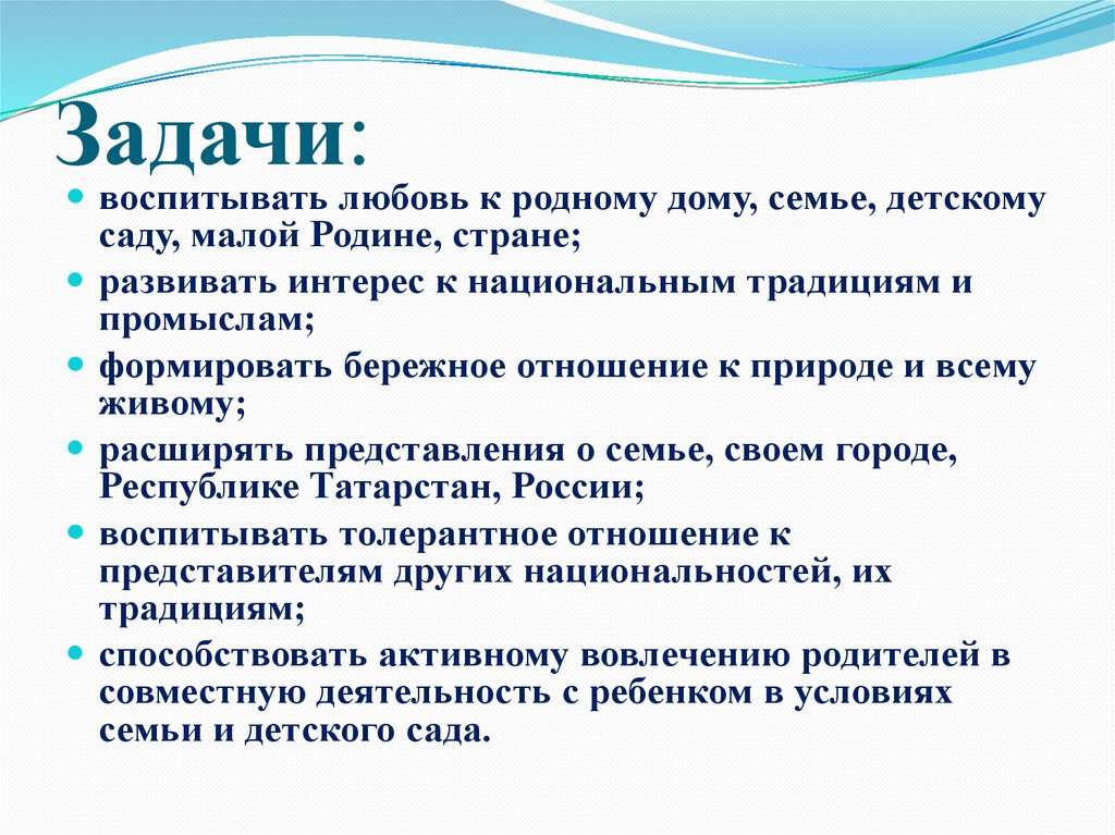 Задачи:воспитывать любовь к родному дому, семье, детскому