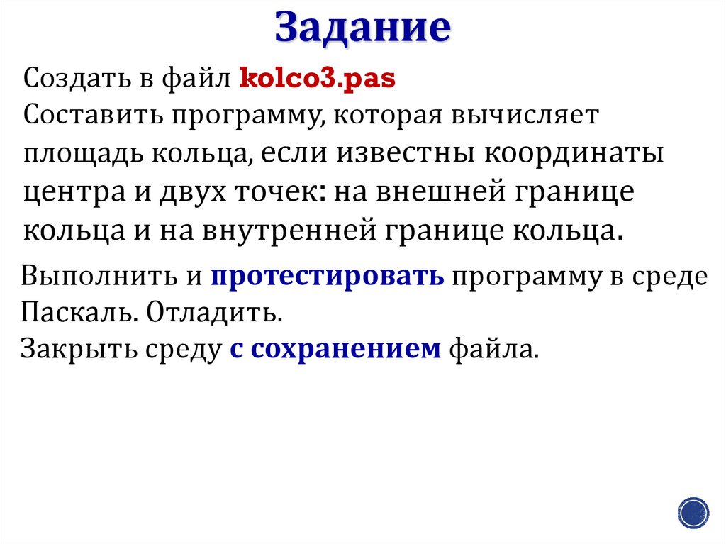 ЗаданиеСоздать в файл kolco3.pas
