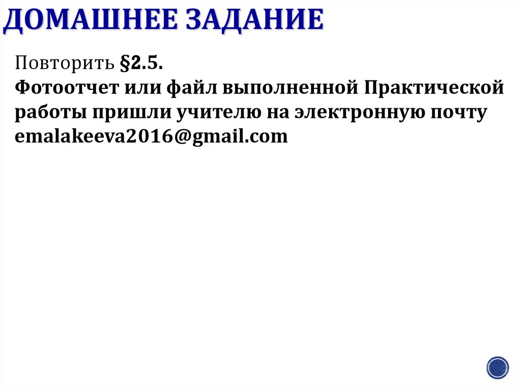 ДОМАШНЕЕ ЗАДАНИЕПовторить §2.5.