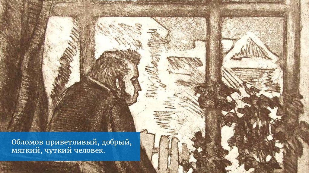 Обломов приветливый, добрый,мягкий, чуткий человек.