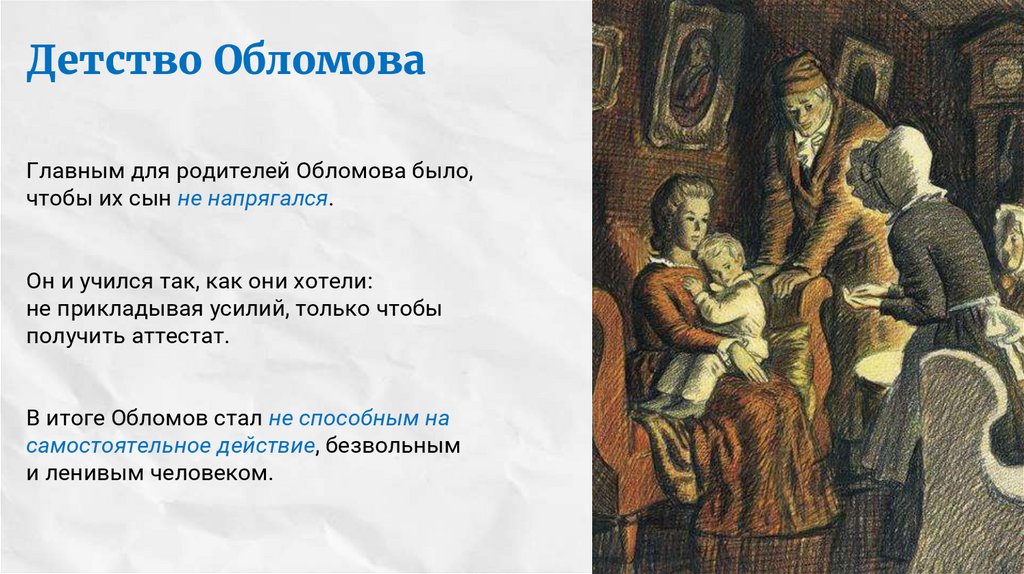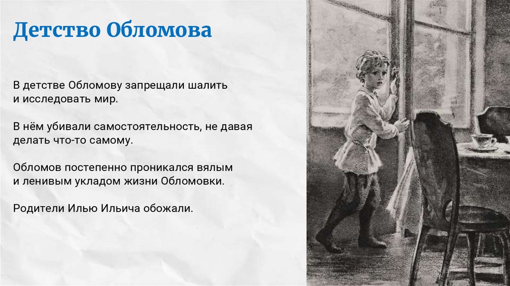Детство ОбломоваВ детстве Обломову запрещали шалить