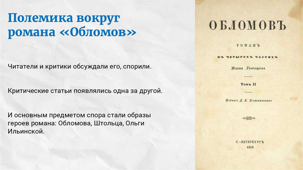 Роман И. А. Гончарова«Обломов» вышел в 1859 году
