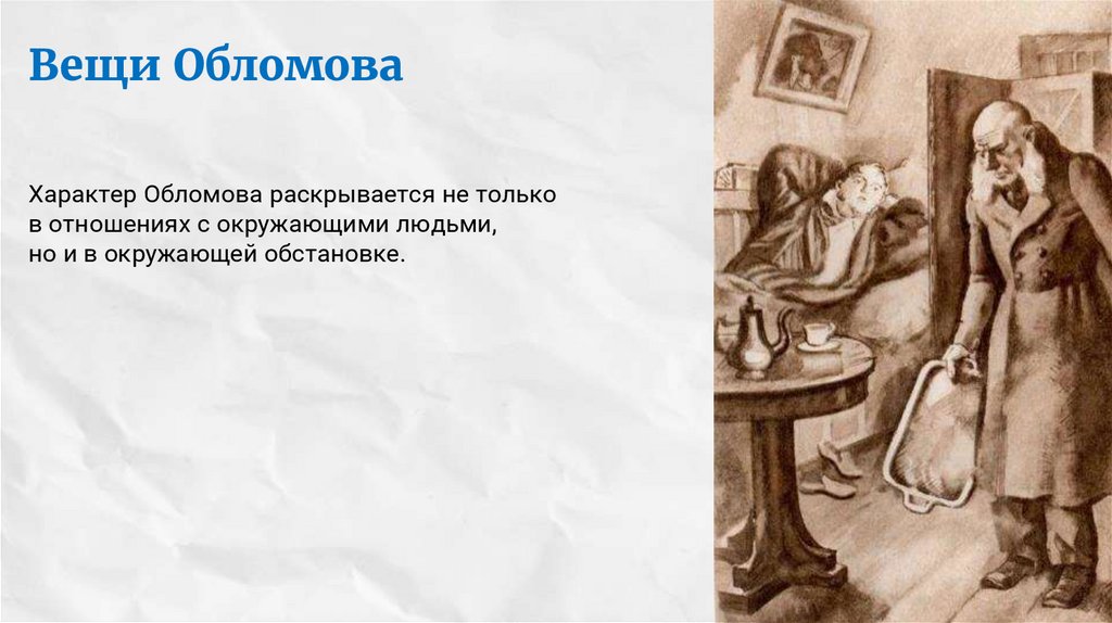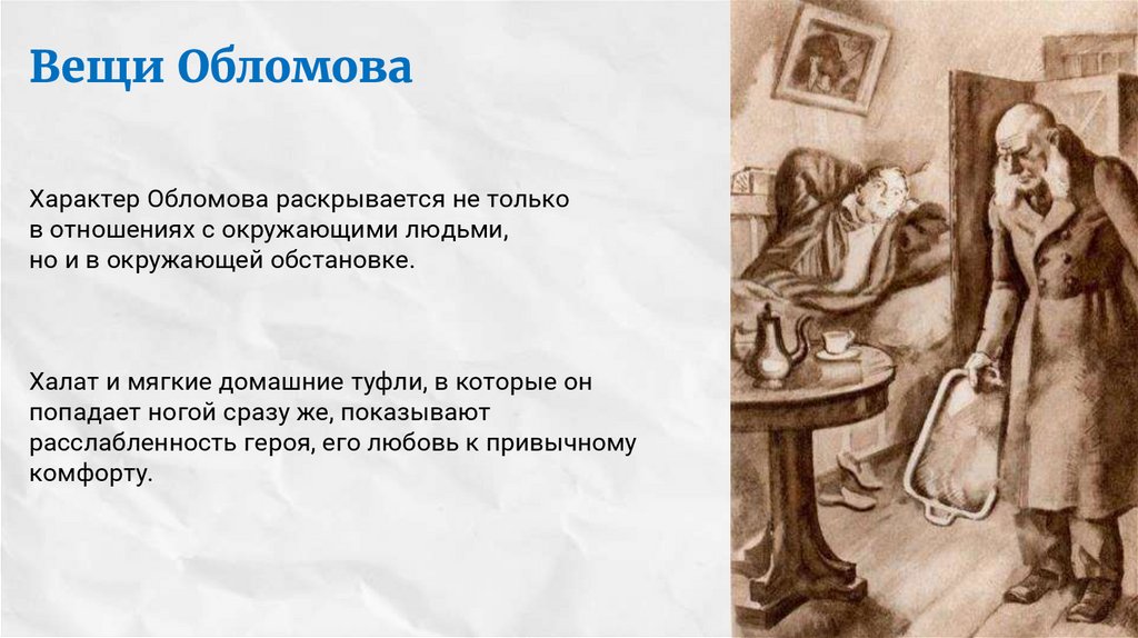 Вещи ОбломоваХарактер Обломова раскрывается не только