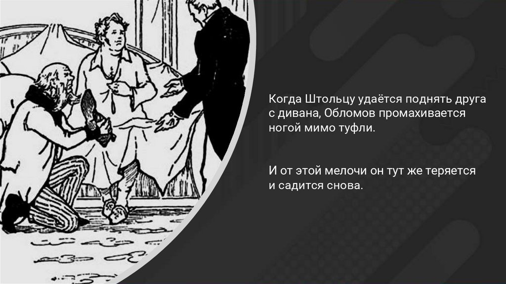 Когда Штольцу удаётся поднять другас дивана, Обломов промахивается