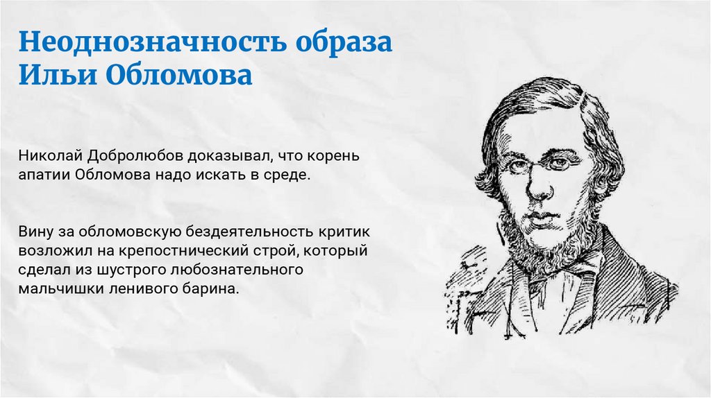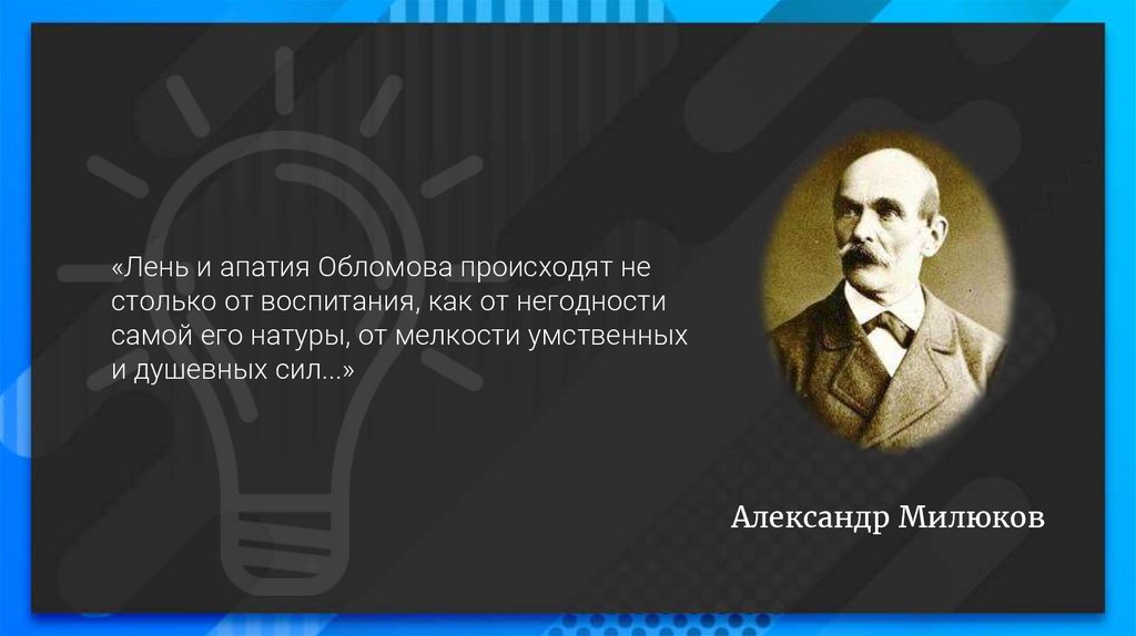 «Лень и апатия Обломова происходят нестолько от воспитания, как от негодности