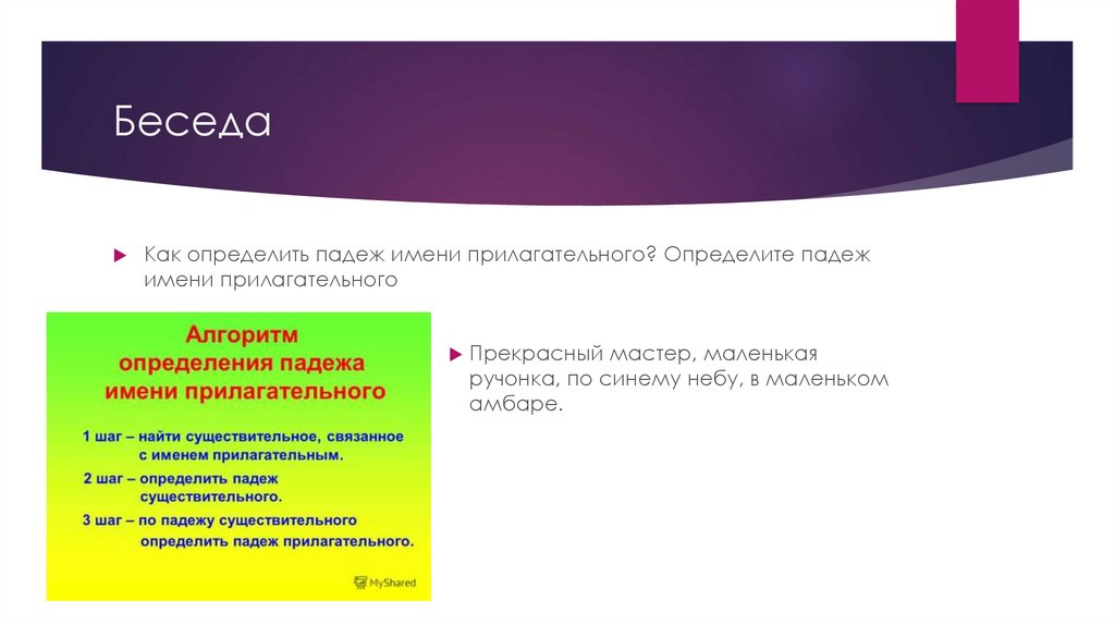 БеседаКак определить падеж имени прилагательного? Определите падеж