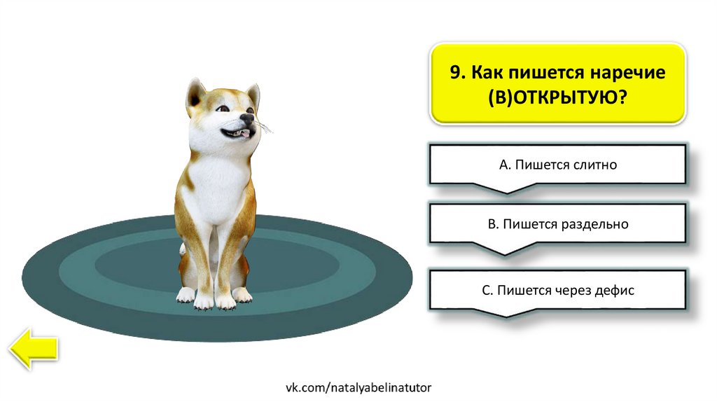 9. Как пишется наречие(В)ОТКРЫТУЮ?