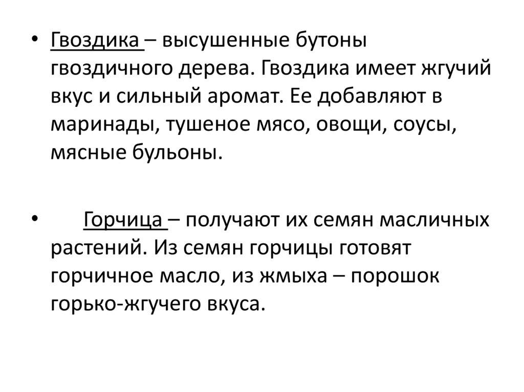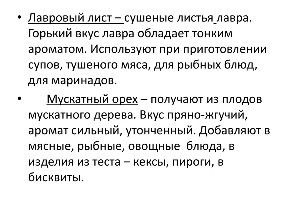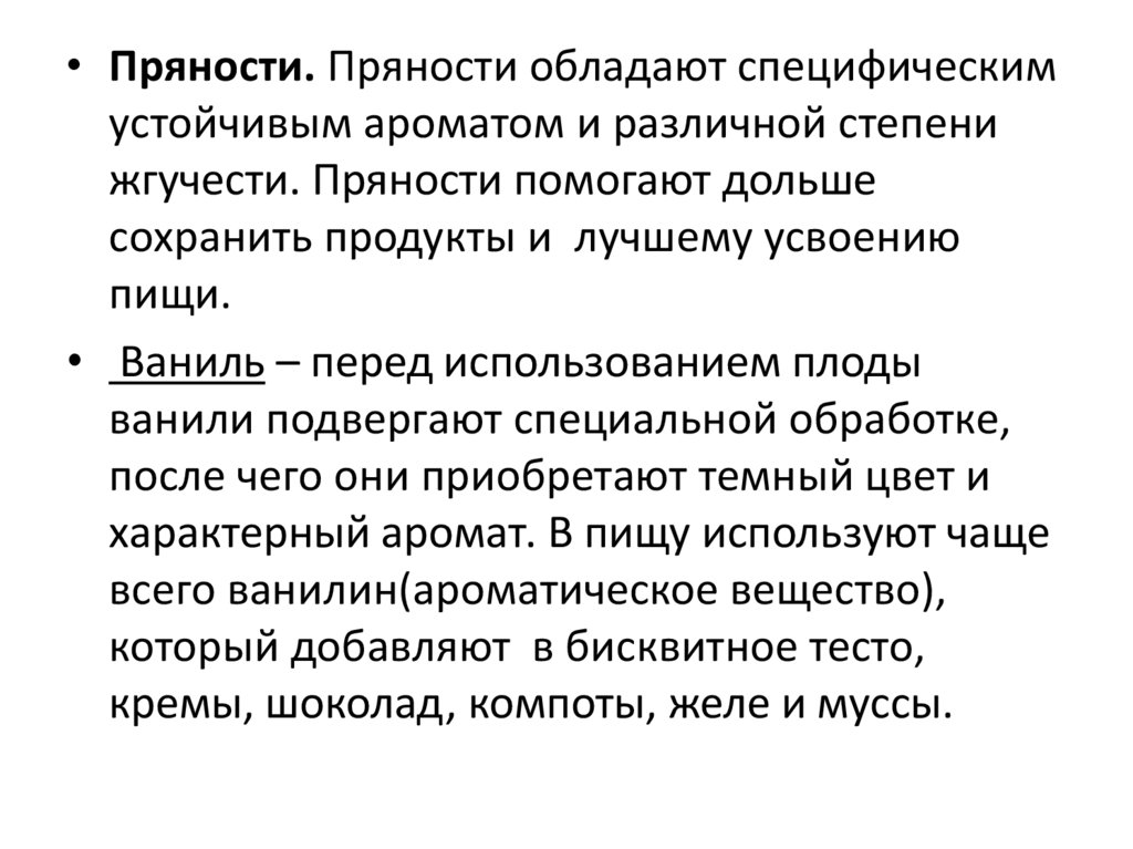 • Пряности. Пряности обладают специфическимустойчивым ароматом и различной степени