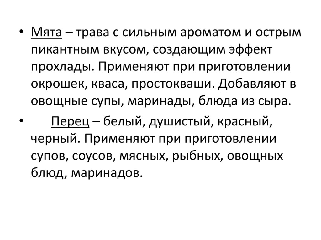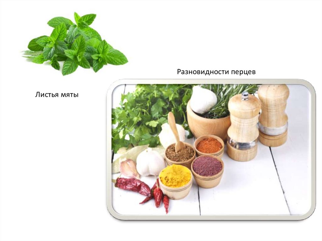 • Мята – трава с сильным ароматом и острымпикантным вкусом, создающим эффект