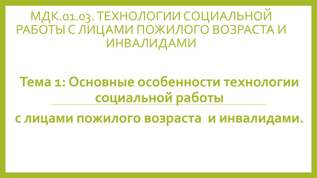 МДК.01.03. ТЕХНОЛОГИИ СОЦИАЛЬНОЙРАБОТЫ С ЛИЦАМИ ПОЖИЛОГО ВОЗРАСТА И