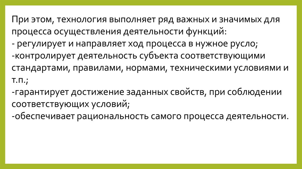 При этом, технология выполняет ряд важных и значимых дляпроцесса осуществления деятельности функций: