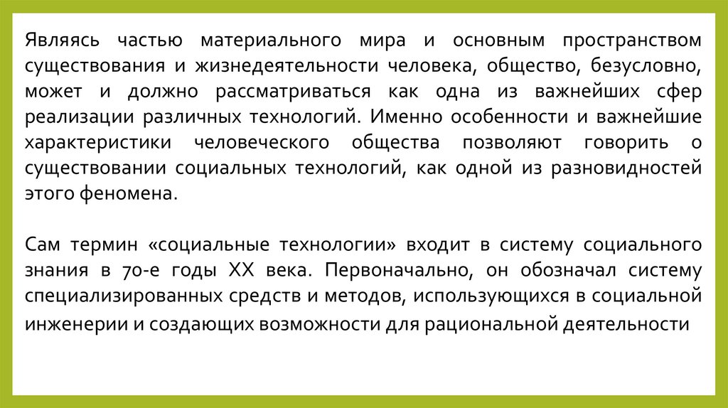 Несмотря на отмеченное выше многообразие социальных технологий,