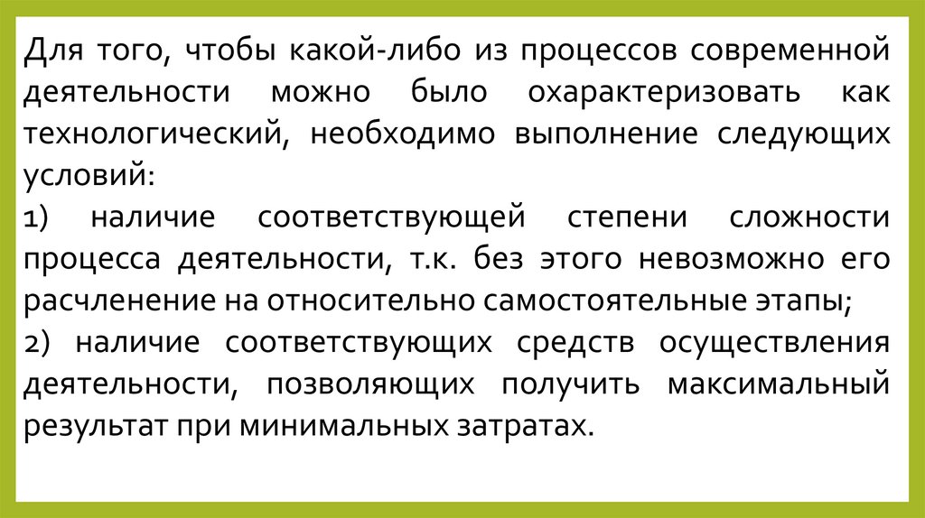 Для того, чтобы какой-либо из процессов современнойдеятельности можно было охарактеризовать как
