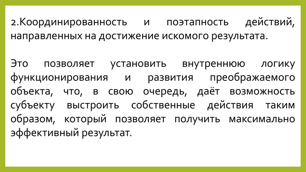 2.Координированность и поэтапность действий,направленных на достижение искомого результата.