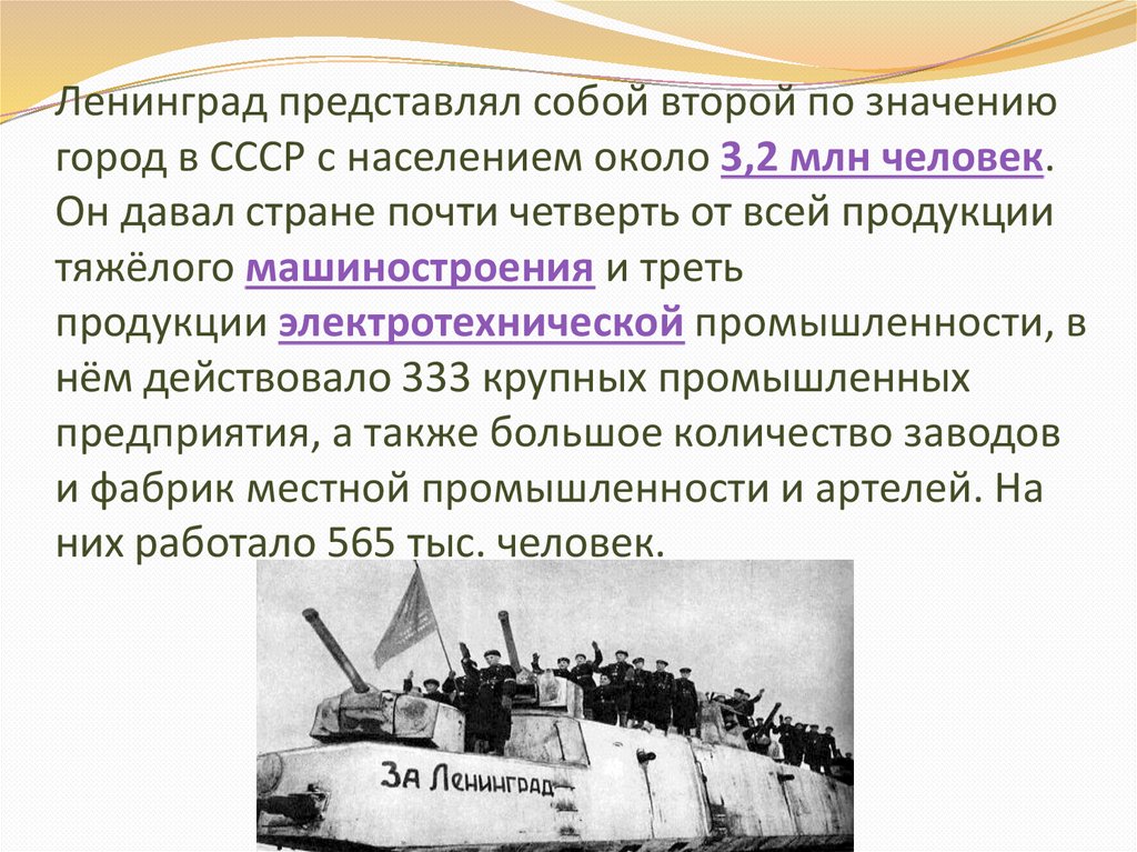 Ленинград представлял собой второй по значениюгород в СССР с населением около 3,2 млн человек.