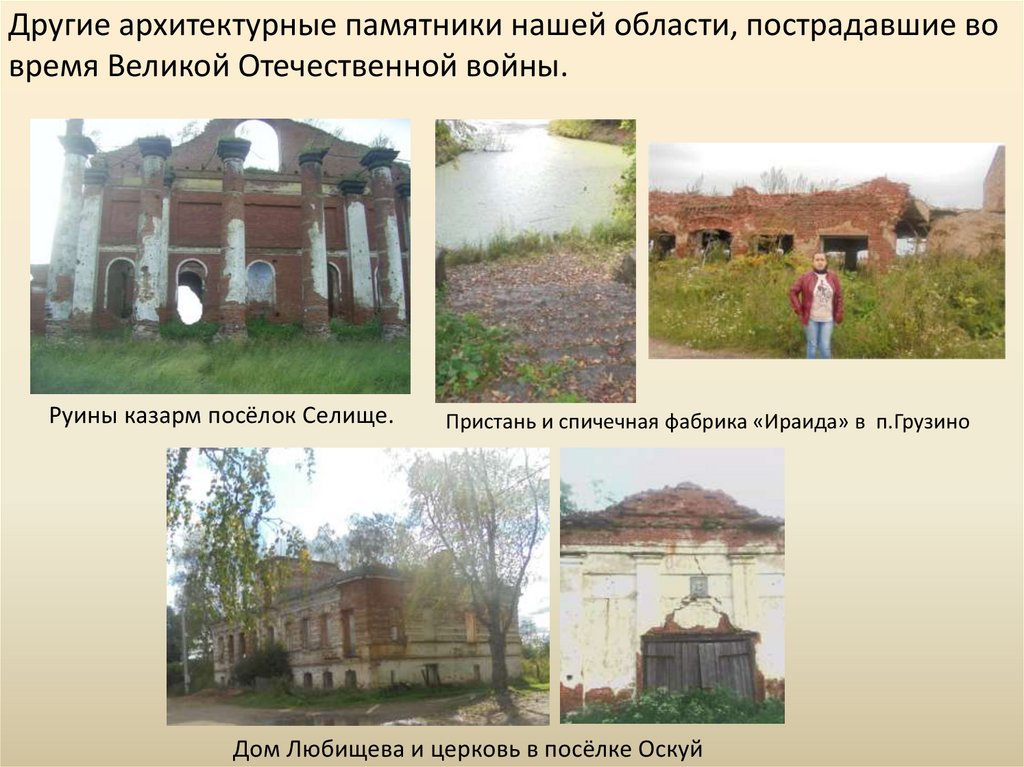 Другие архитектурные памятники нашей области, пострадавшие вовремя Великой Отечественной войны.