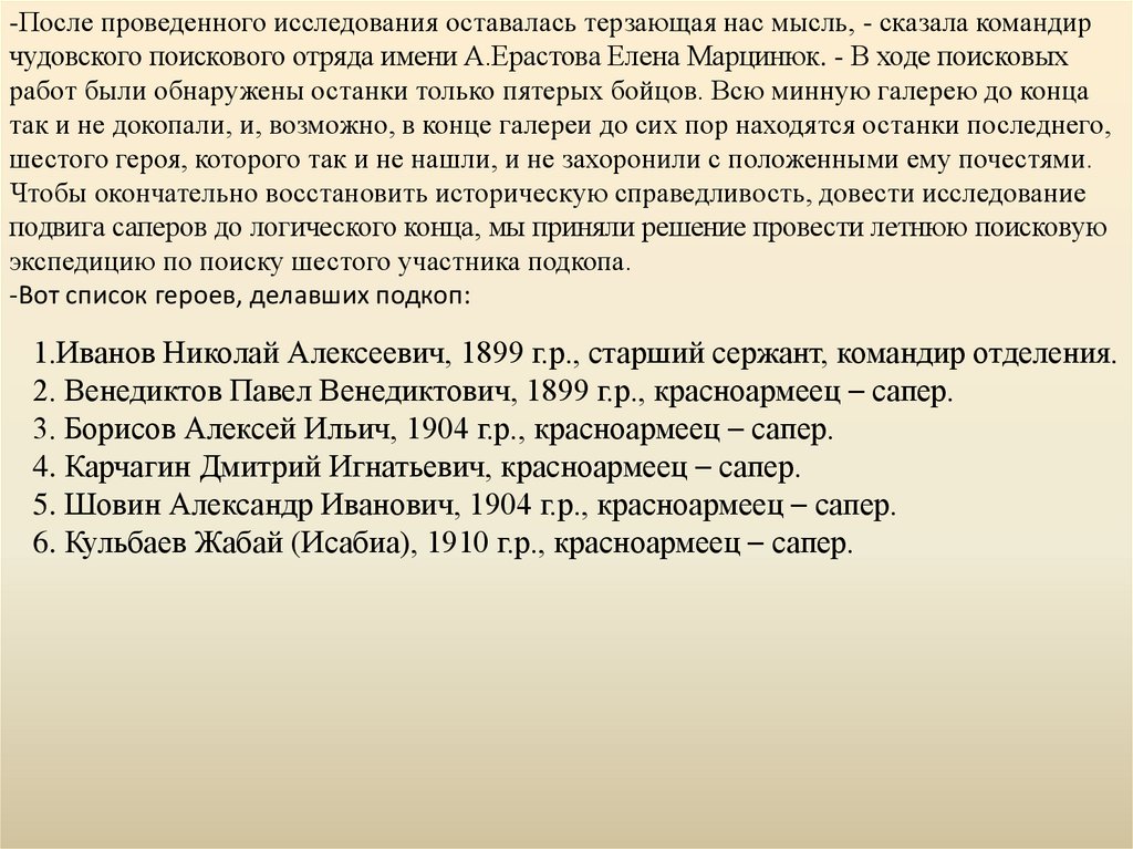 Долгие послевоенные годы судьба саперов оставалась неизвестной. Но самое обидное в