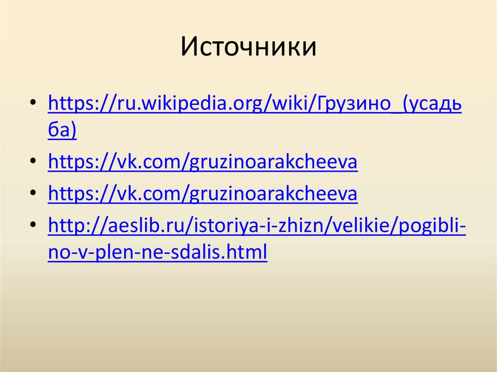 Источники• https://ru.wikipedia.org/wiki/Грузино_(усадь