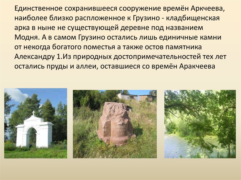 Единственное сохранившееся сооружение времён Аркчеева,наиболее близко распложенное к Грузино - кладбищенская